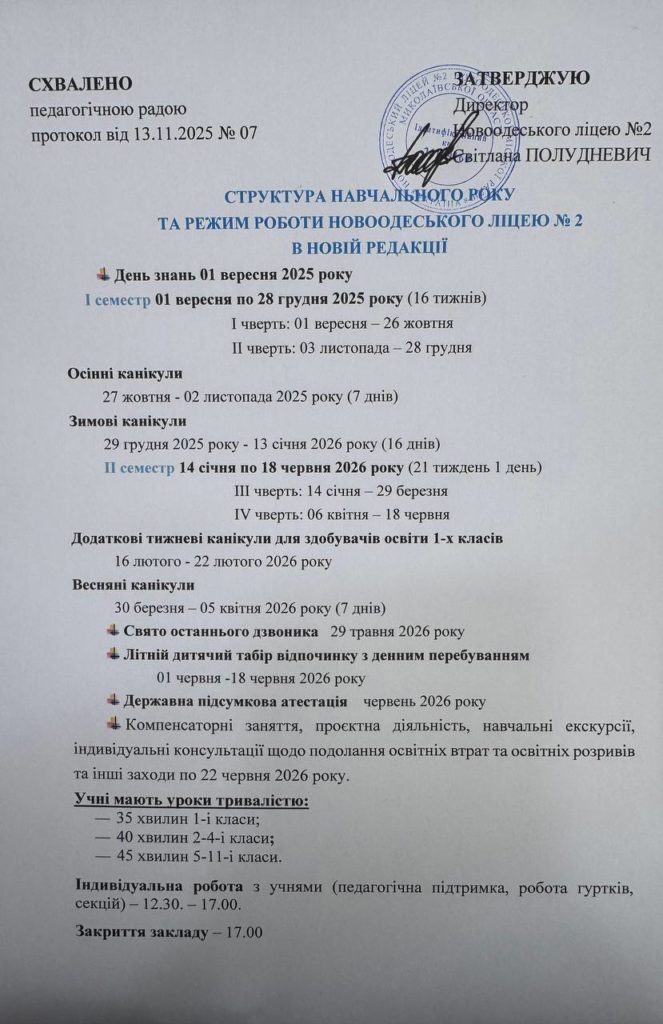 Структура ліцею